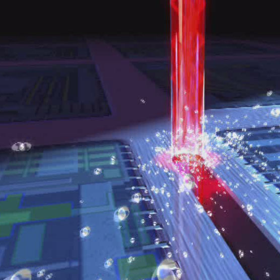 这是世界上首创将水刀和激光的优点整合在一起的一项技术。巧妙地利用空气与水折射率的不同,激光在空气/水介面全反射,因此微水柱就同光纤一样被用来引导激光。只要在水柱的有效工作距离,无论把工件放在哪个位置,其加工效果都是相同的,免除了对焦的麻烦。这一特点有助于精确切割。同时由于水柱的冷却作用,热影响区(HAZ)、热变形和材质变化的问题几乎完全不存在,切割道干净利落。微水刀激光®的表现,远超过高压水刀切割和传统激光切割。